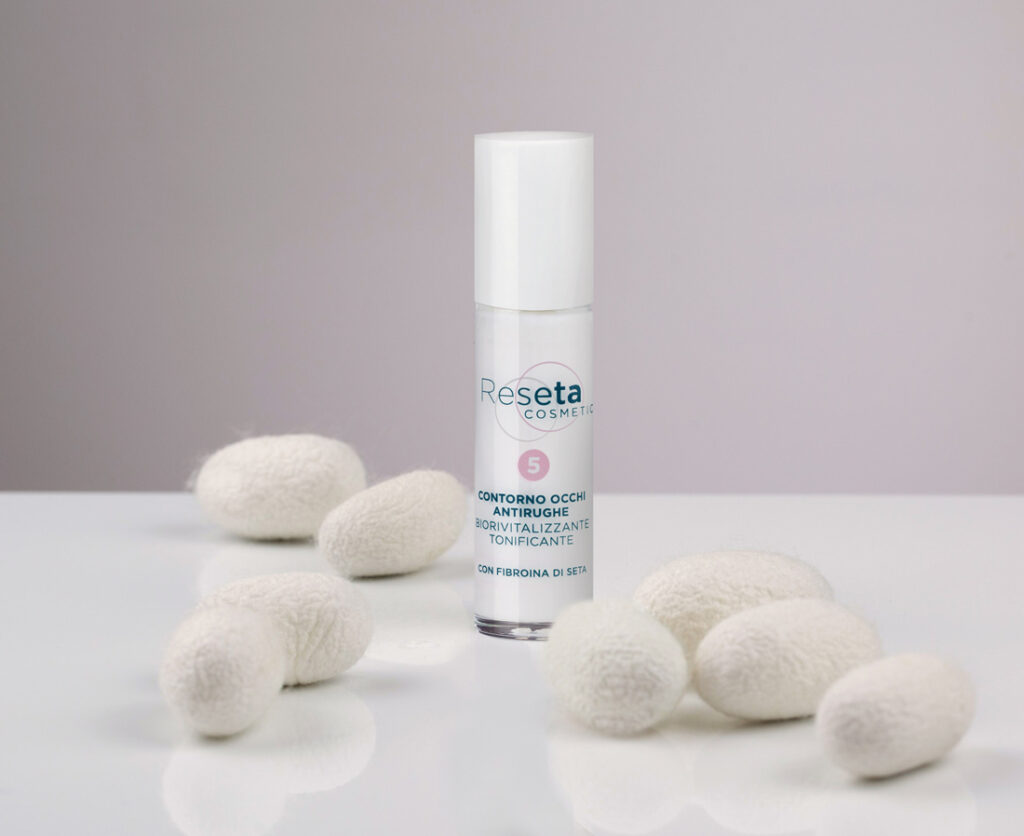 Emulsione cremosa formulata con fibroina di seta al 5%, solubilizzata in Vitamina E e complessata ad una miscela lipofila di origine vegetale a base di olio Argan (tonico – elasticizzante – antiage che promuove la sintesi di collagene), olio d’Albiccocca (emolliente – elasticizzante), olio di Avocado (rigenerante – nutriente) ed olio di Borragine (nutriente – antiage, che aiuta a contrastare i gonfiori perioculari del contorno occhi).